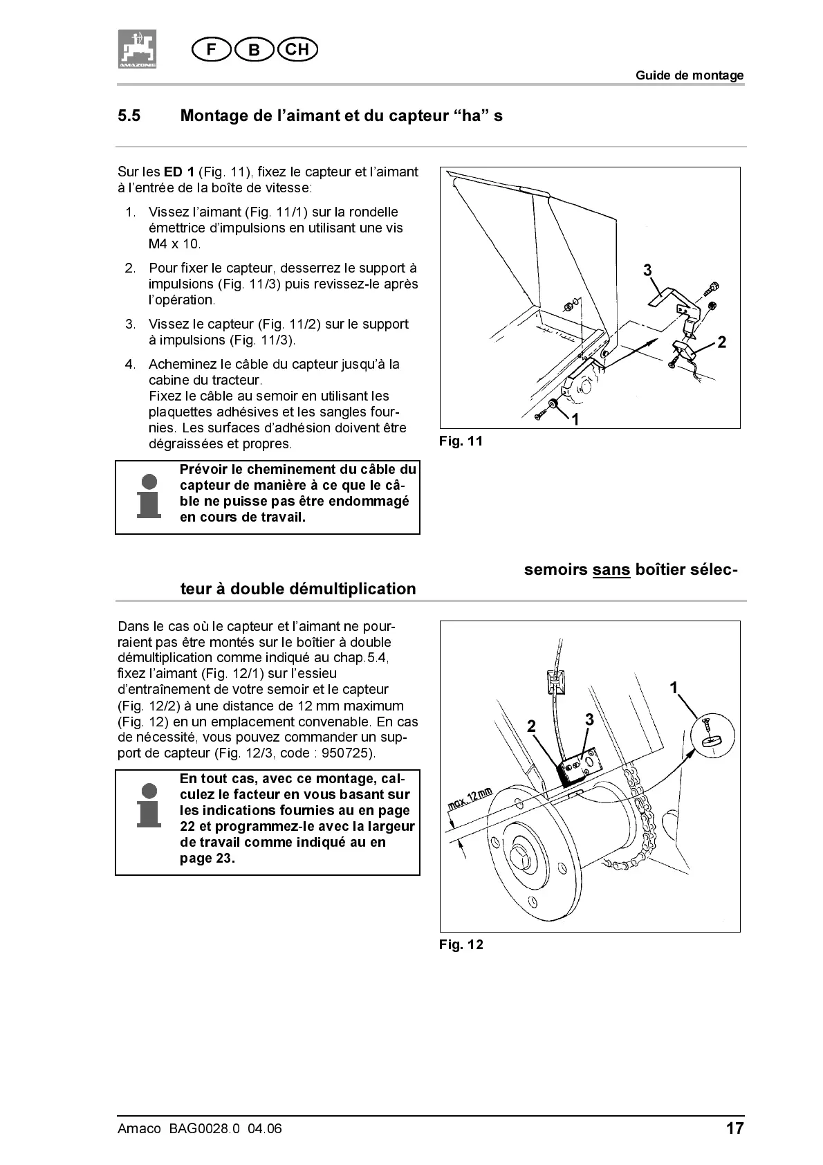 5.6 Montage de l’aimant et du capteur “ha” sur semoirs sans boîtier sélec-