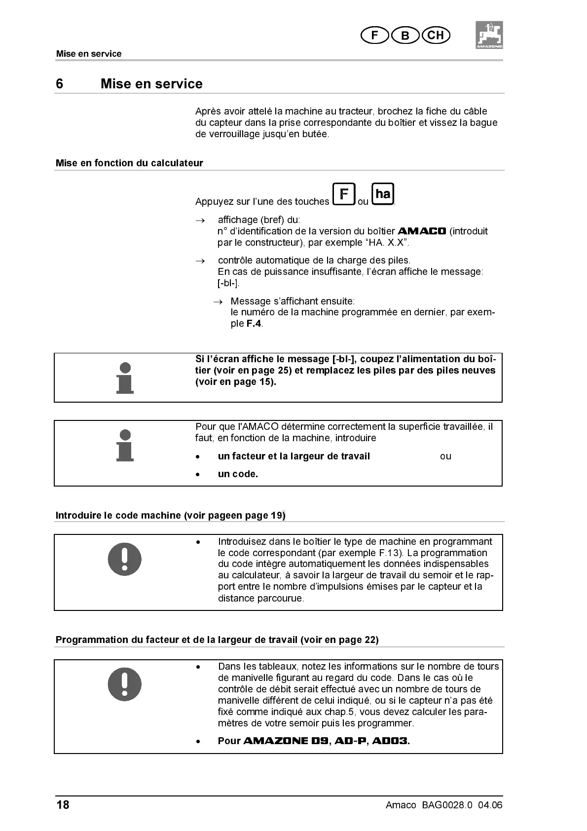 Programmation du facteur et de la largeur de travail (voir en page 22)