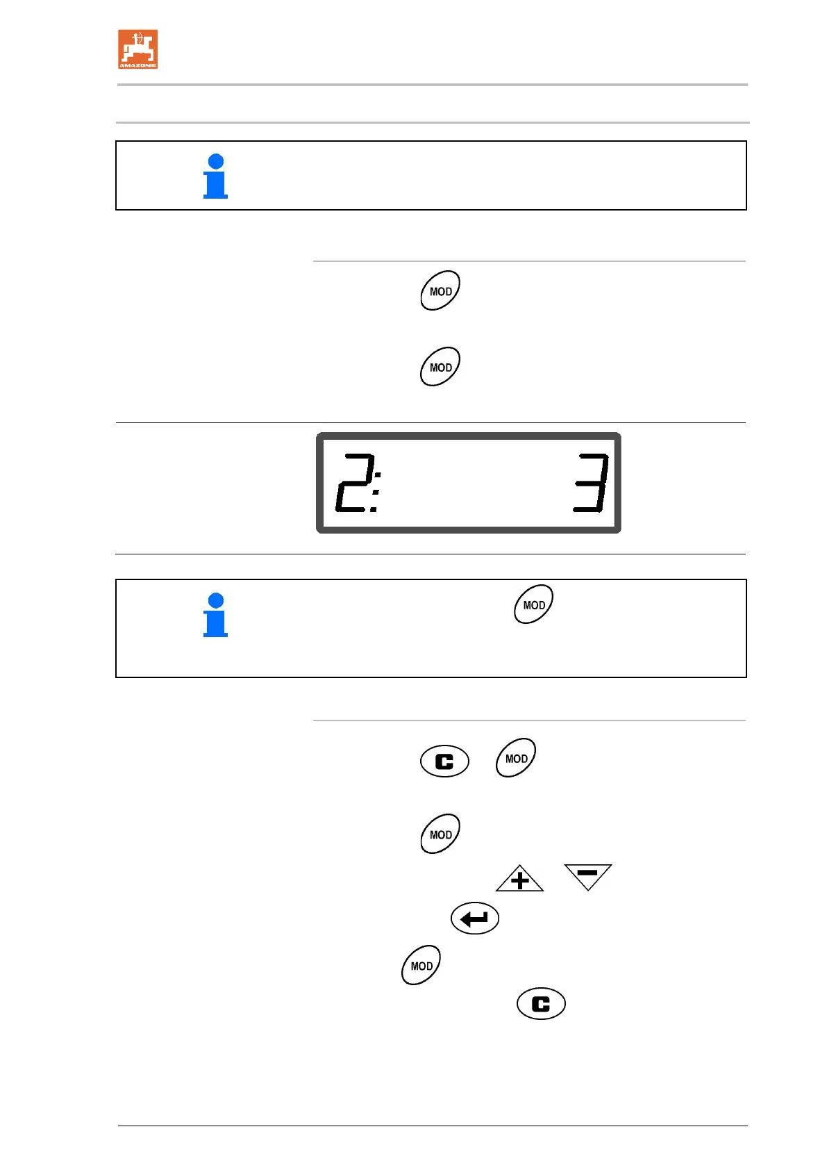 As soon as the work display appears after switching on, the modes 1