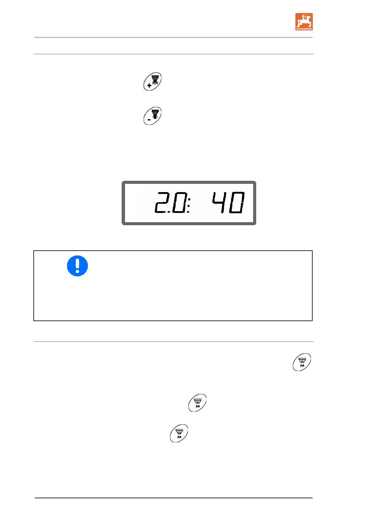 • The stored working width is modified by changing the spread