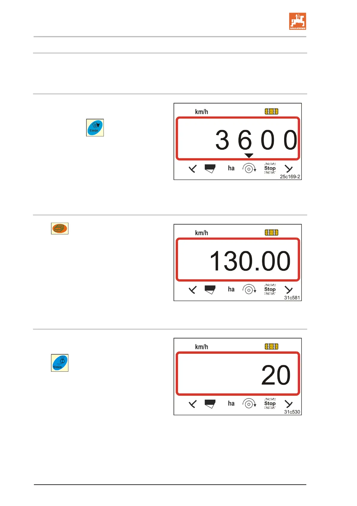7.4.3 Displaying the speed of the metering roller drive motor