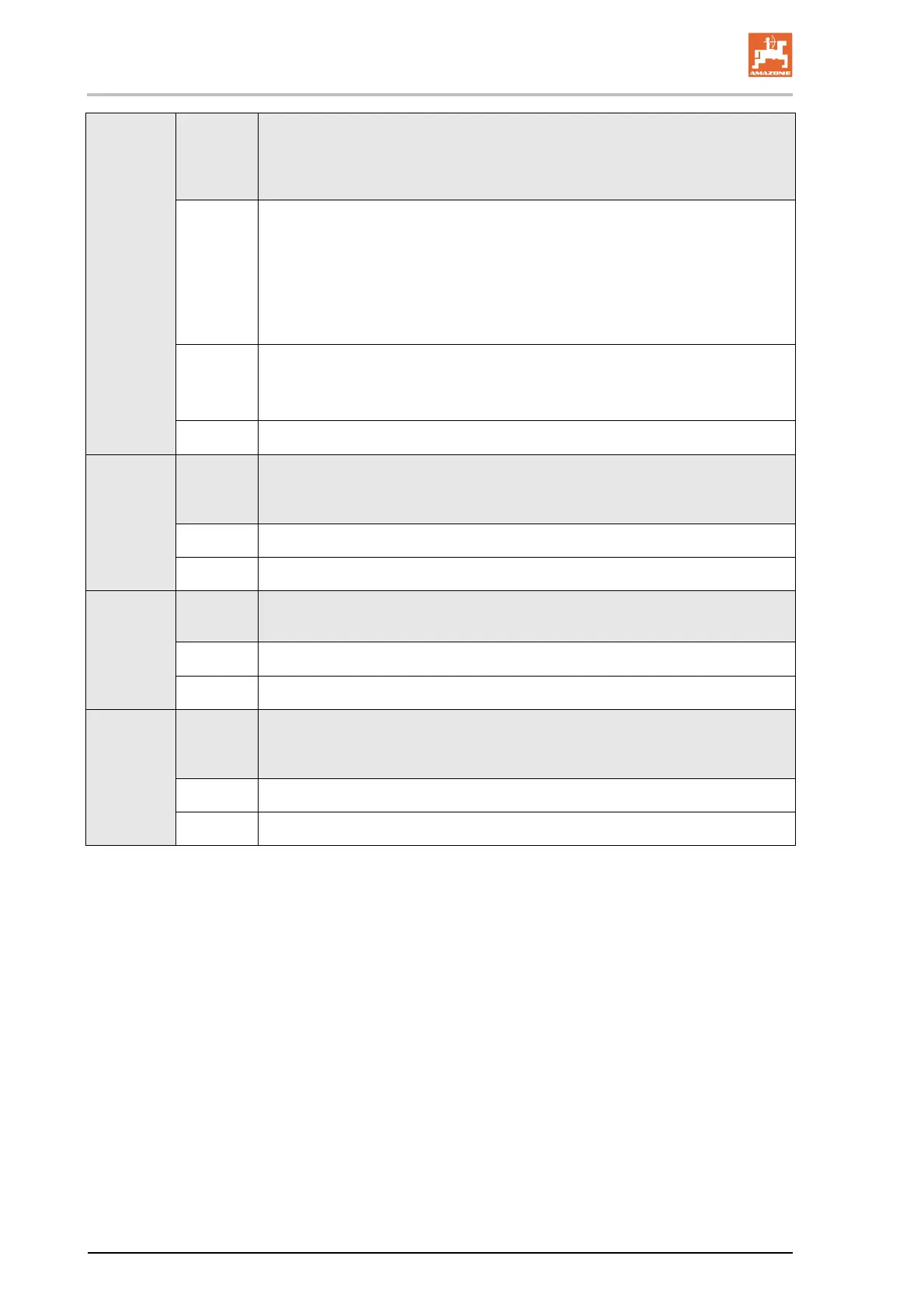 section "Table for seed rate reduction while creating tramlines", Seite