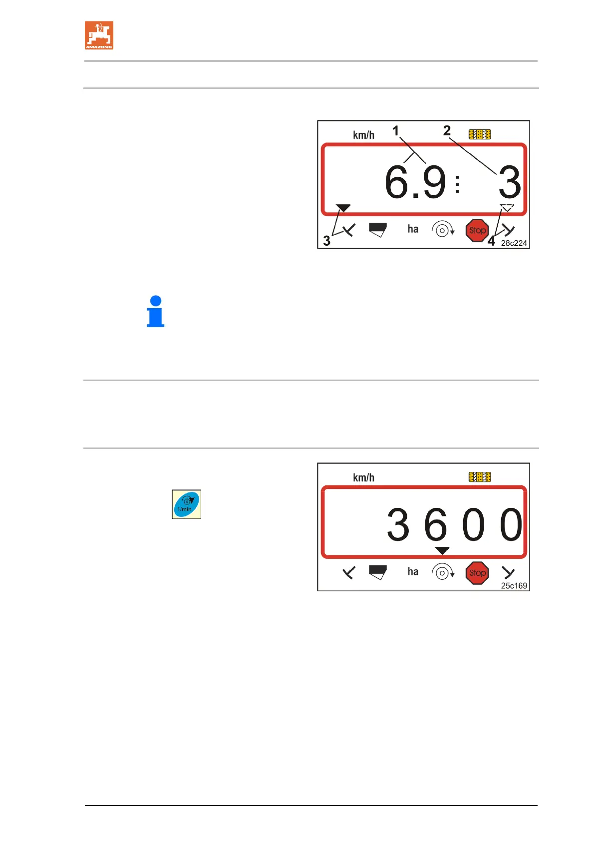Data can be displayed for approx. 10 seconds during seeding by actuating the function keys.