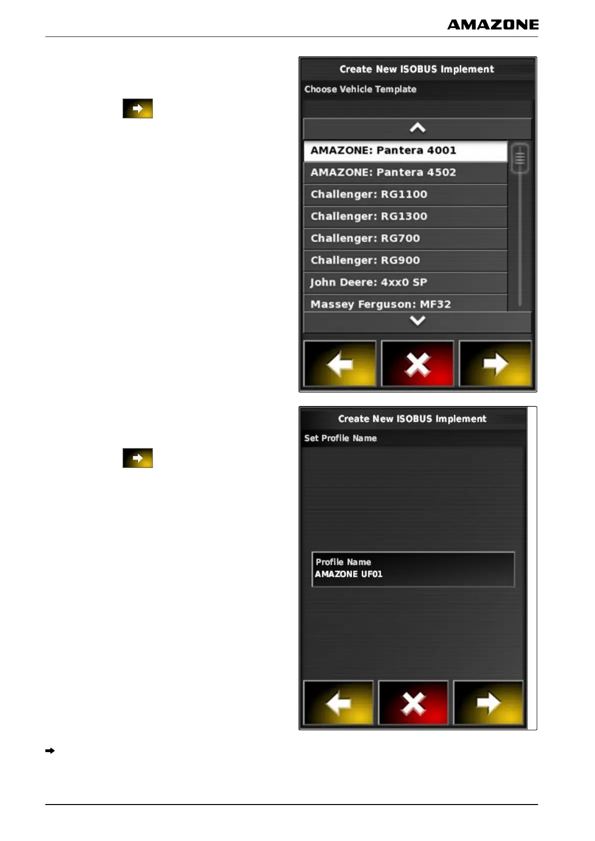 F | Configuring the AMAPAD | Configuring an implement