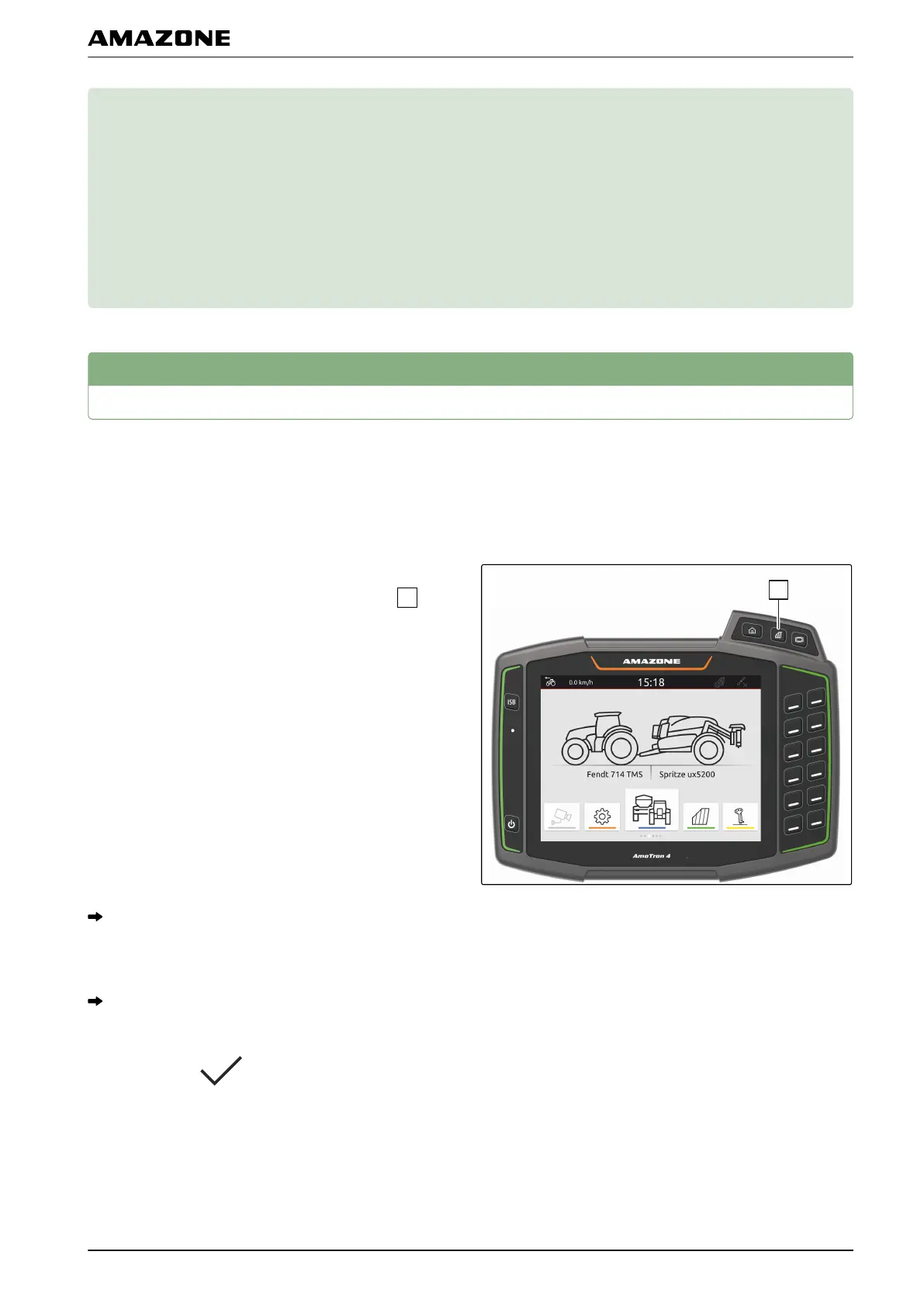 A list with the connected implements is shown.