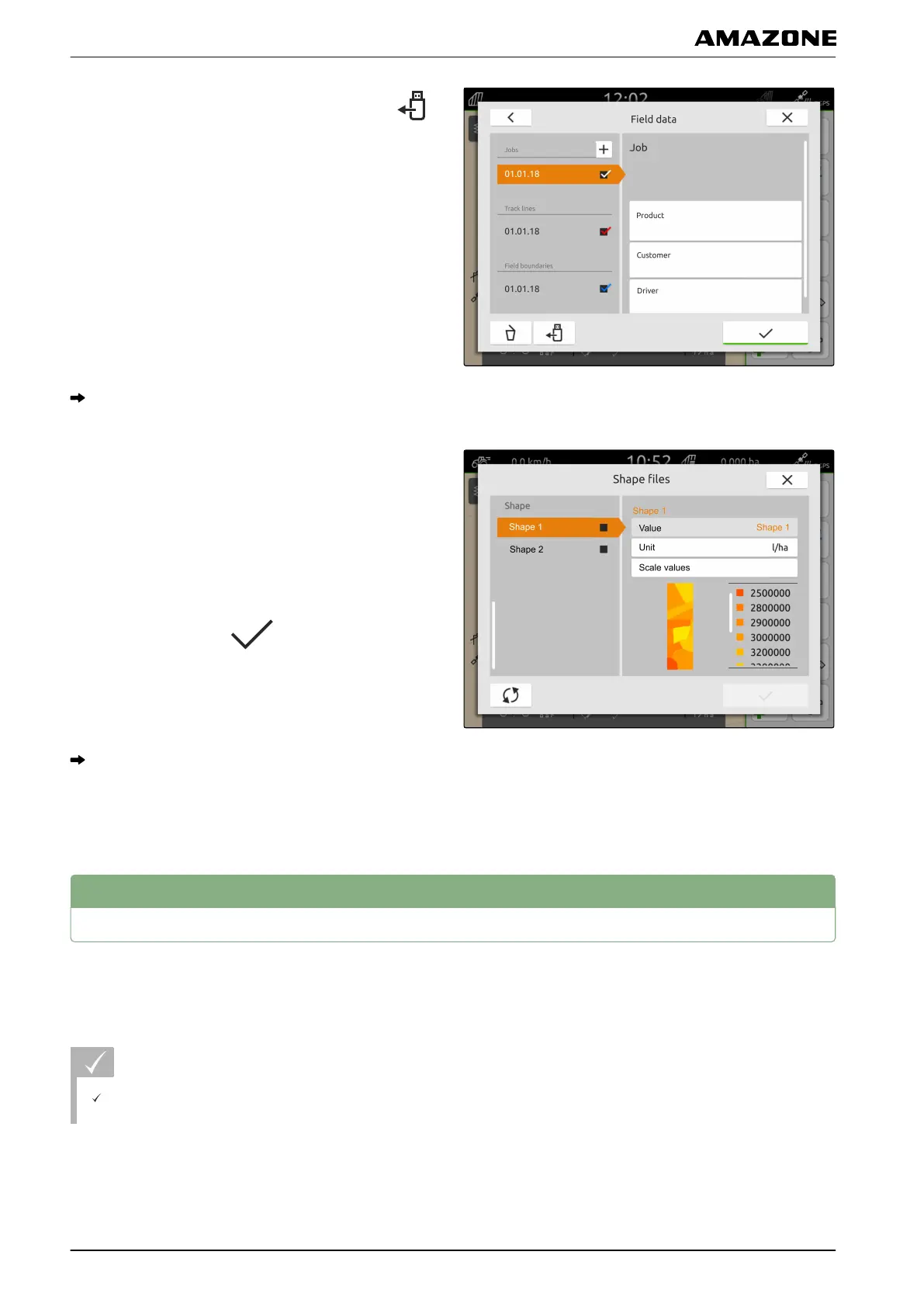 The job data is imported, see page 63 or the field