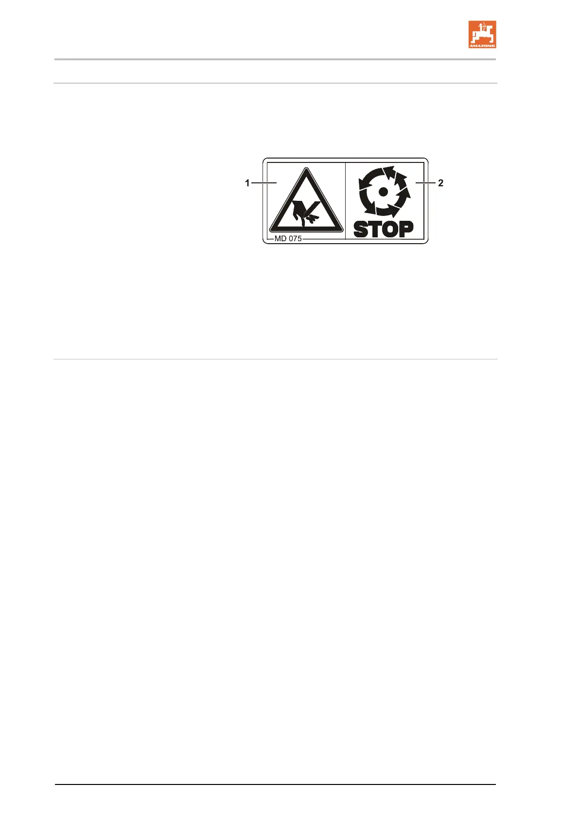 Warning pictograms indicate danger areas on the machine and warn