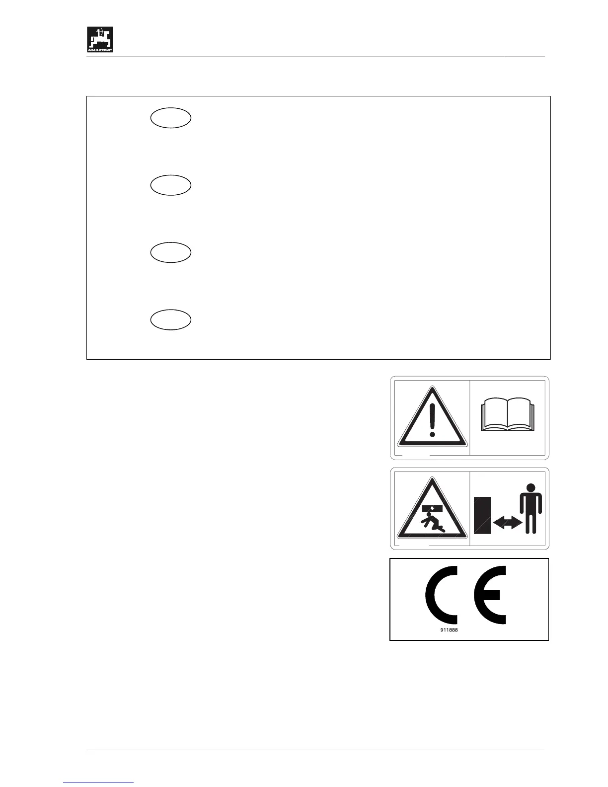 The CE sign indicates that the implement fulfils the