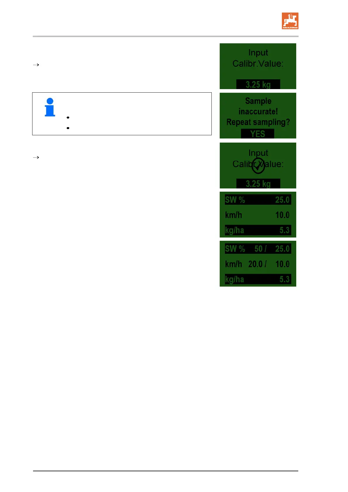 10. Weigh the calibrated seed and enter the value [kg] in the on-