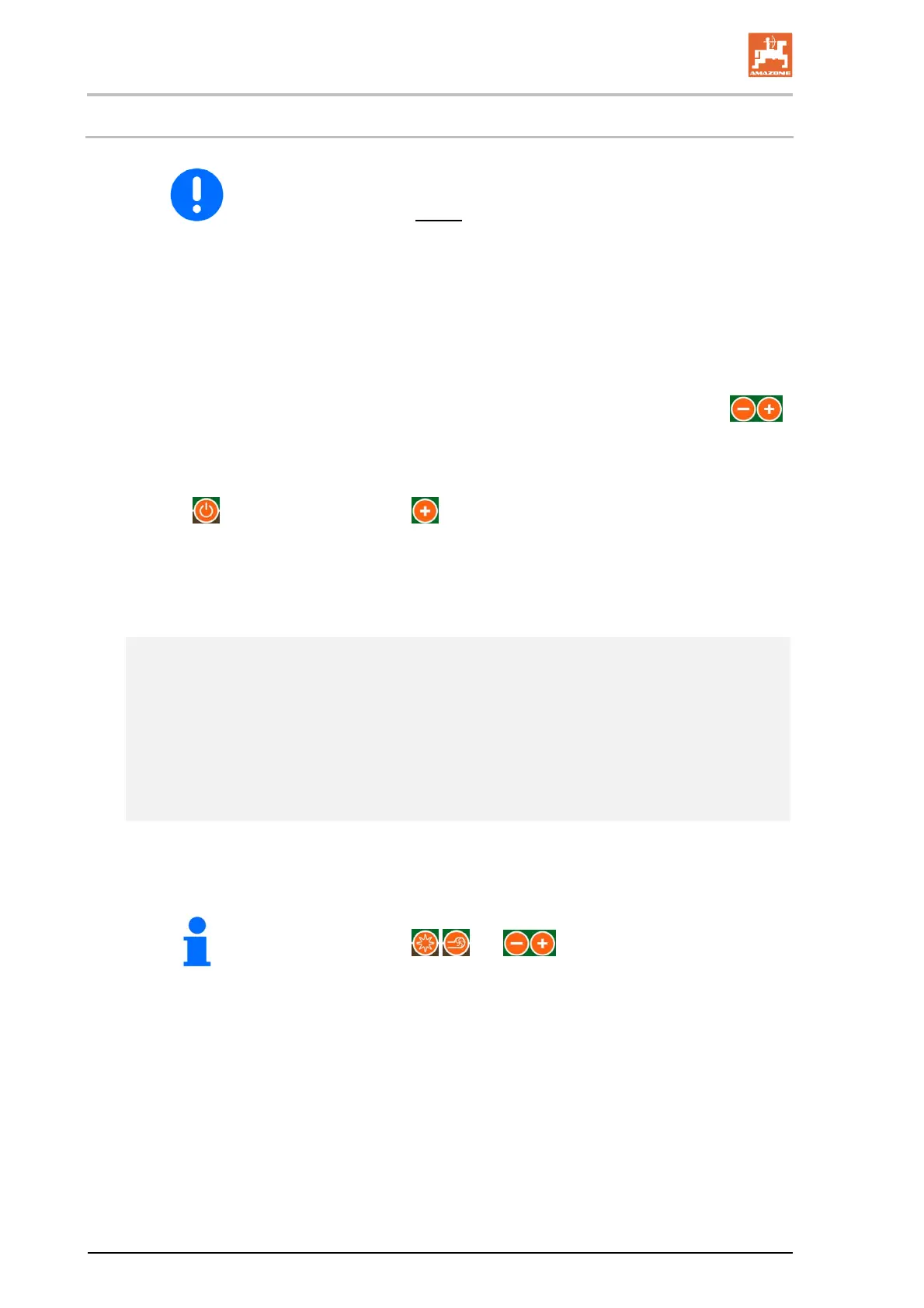 7. Enter the determined seeding shaft speed (e.g. 50 [%]) on the control terminal using the