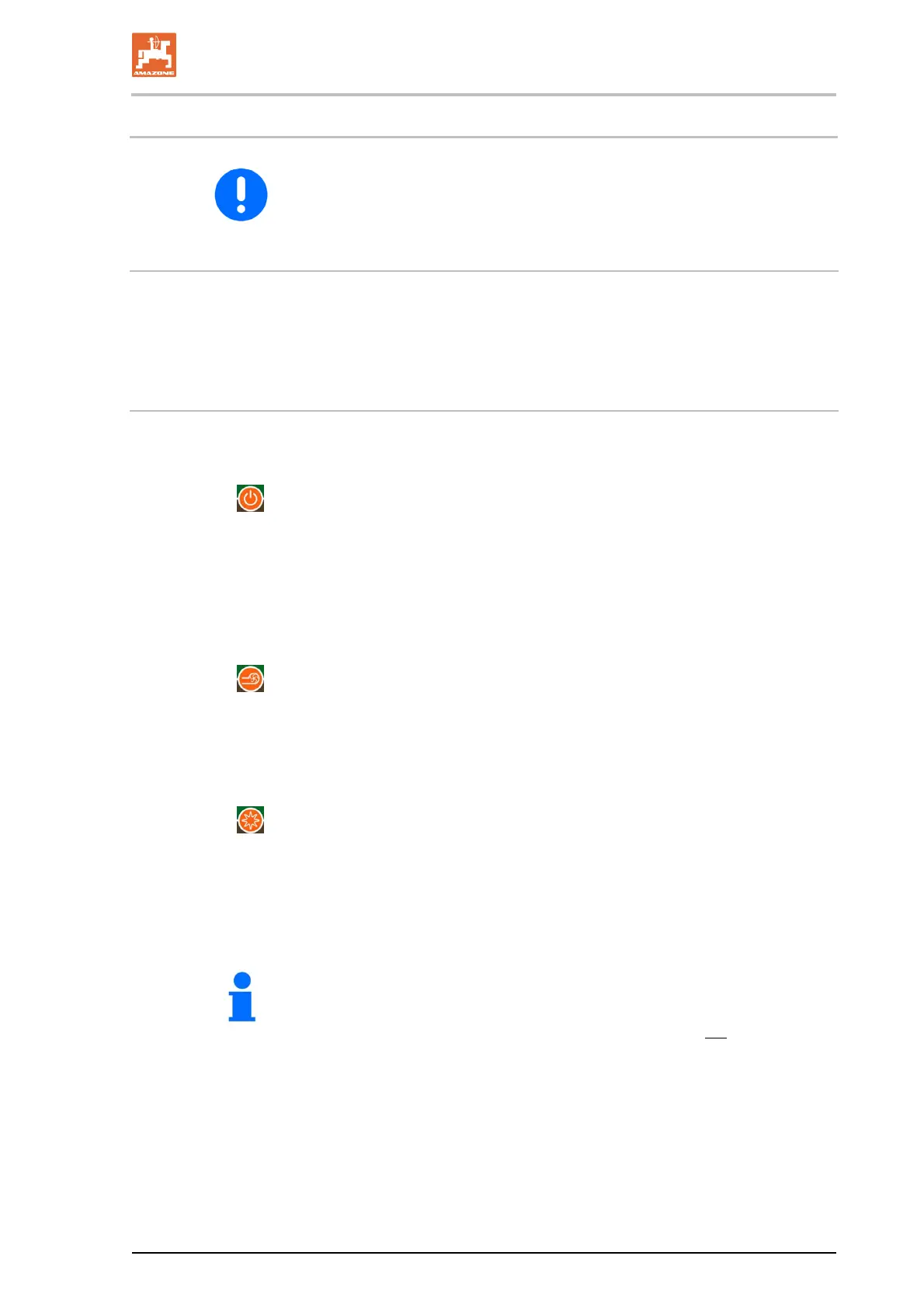 1. Instruct any people in the area to stand at a minimum distance of 10 m from the implement.