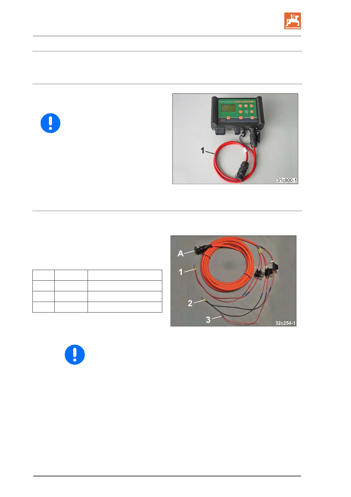 If the tractor is not equipped with a 3-pin standard socket, have the battery cable retrofitted on your