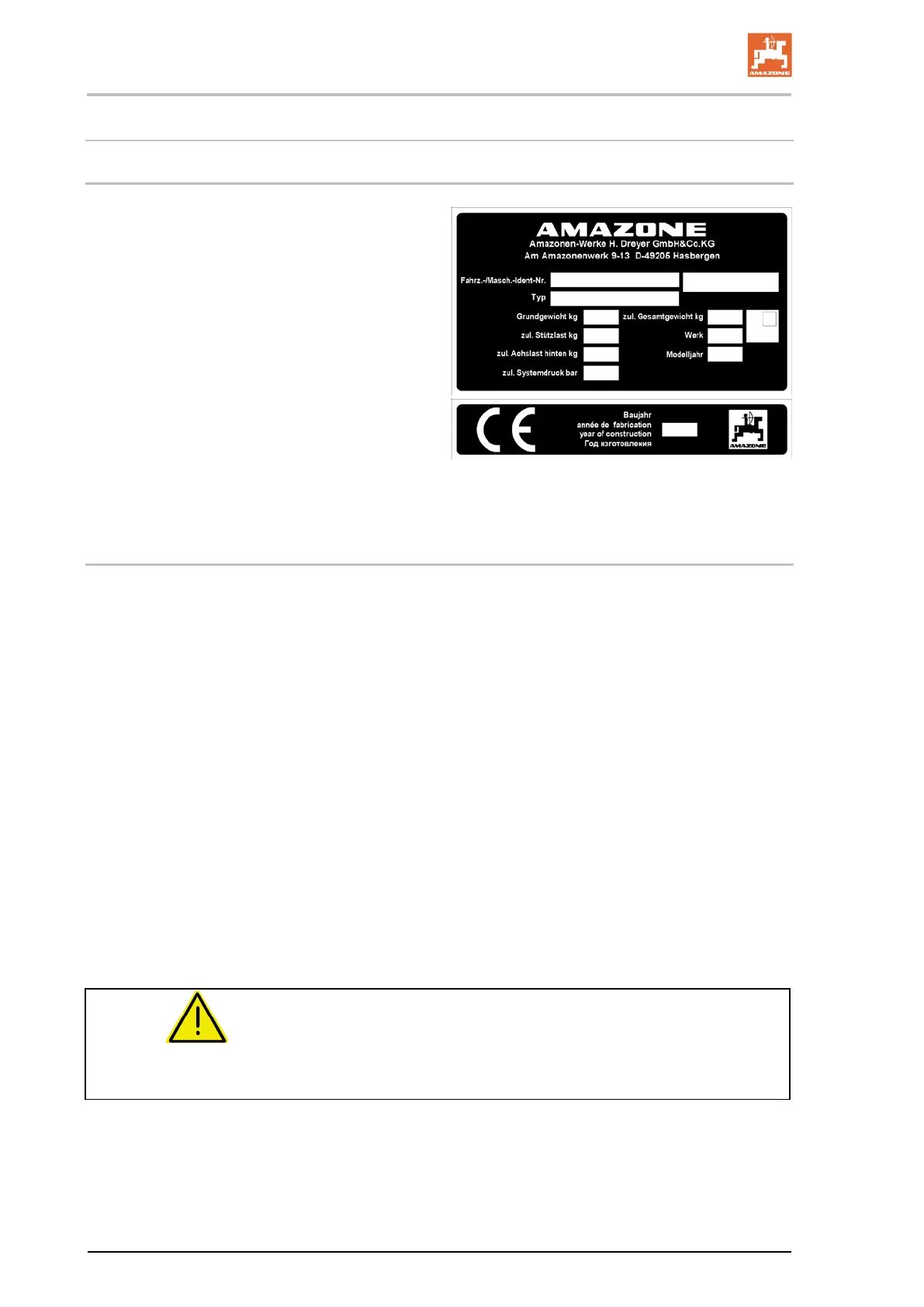 • Exclusive use of genuine AMAZONE spare parts.