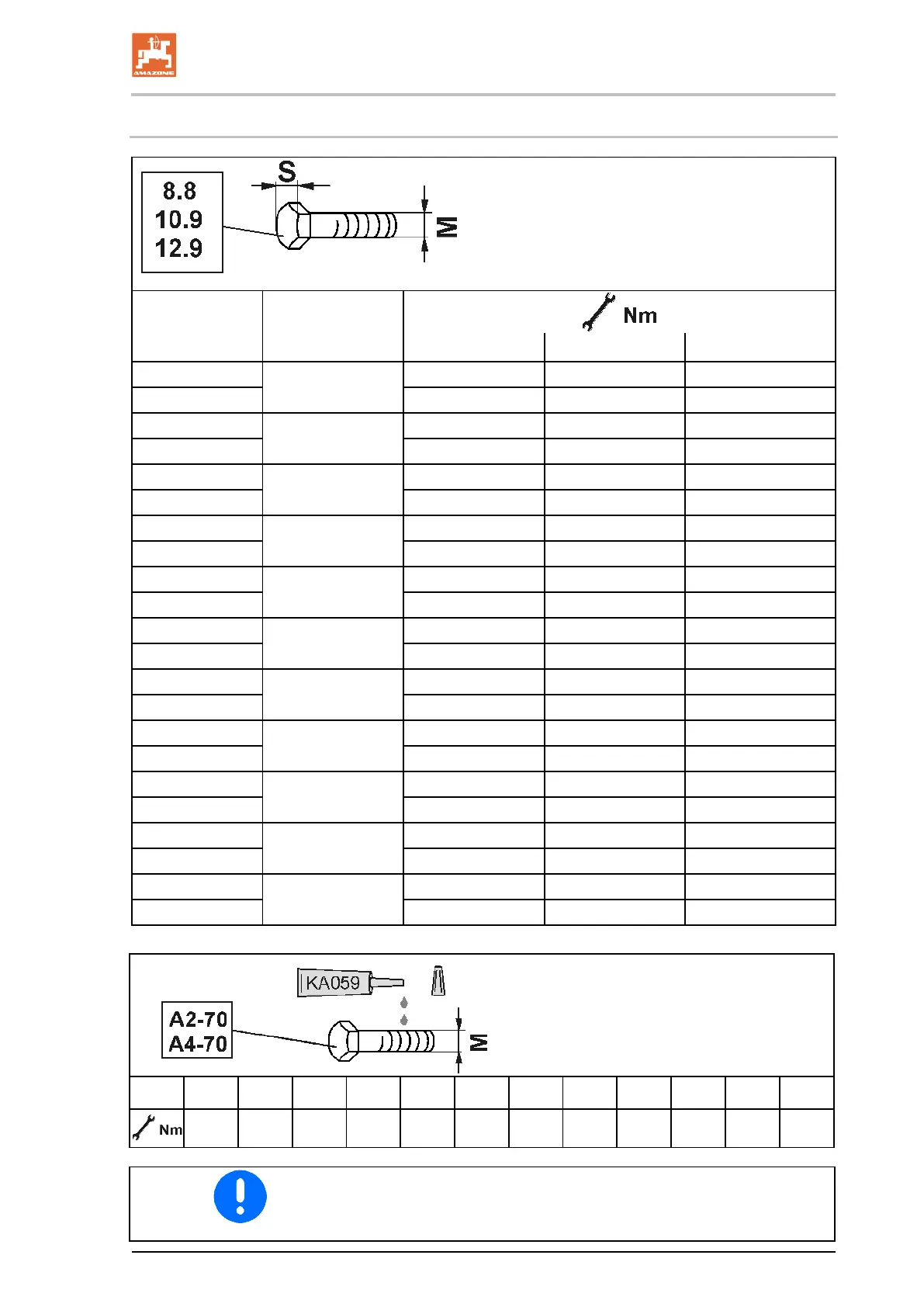 13.10 Screw tightening torques