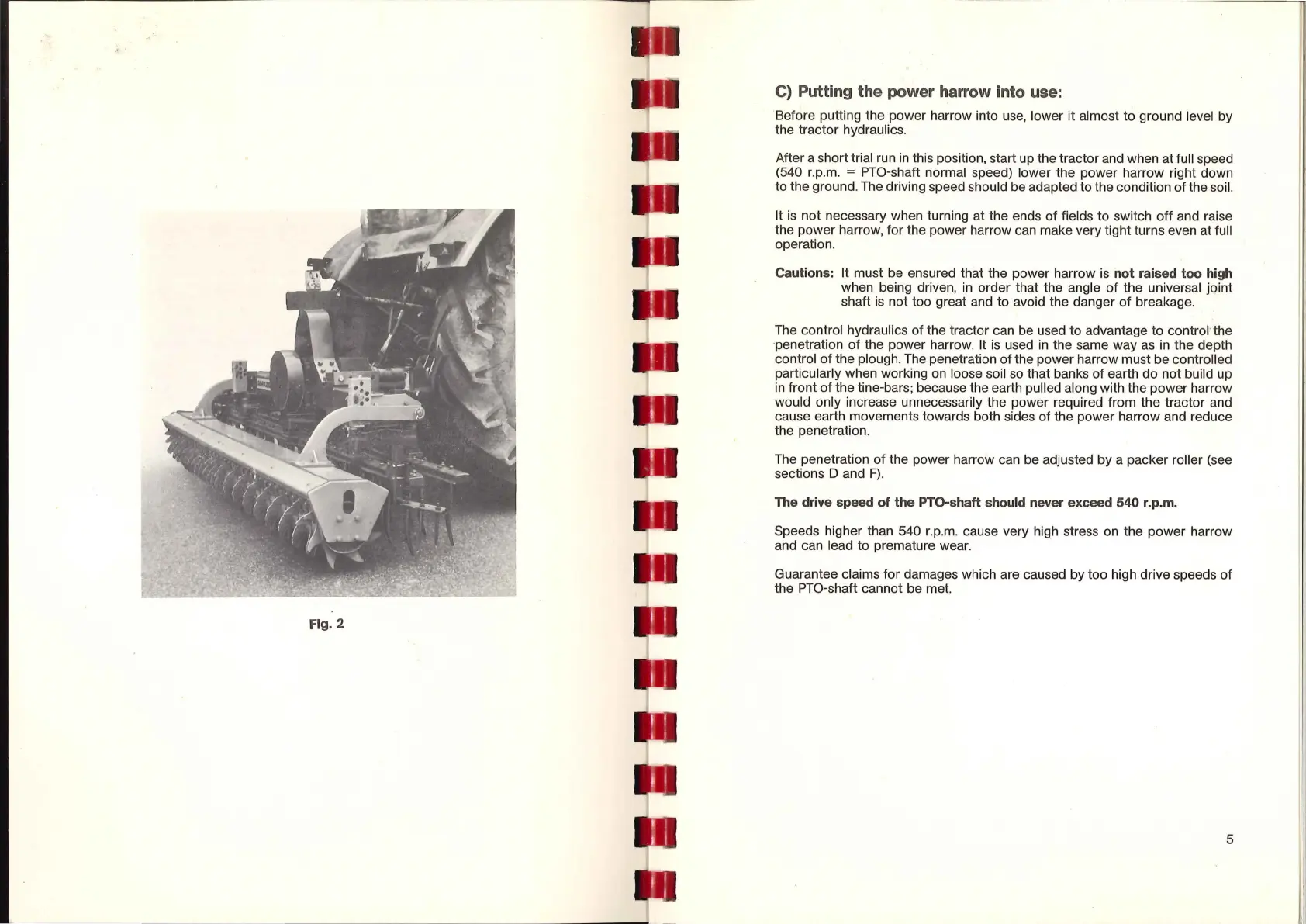 = PTO-shaft normal speed) lower the power harrow right down