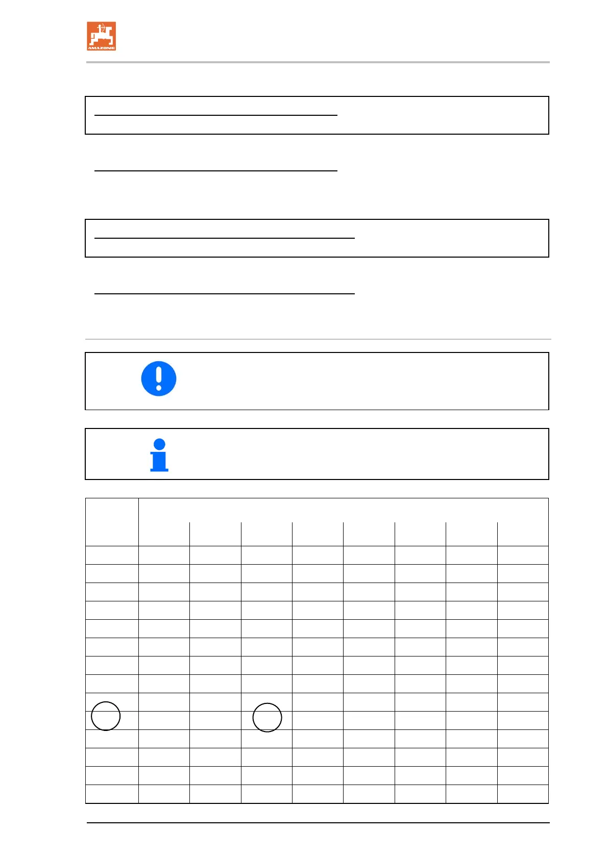 Re-fill quantities [l] for sprayer booms with working widths of