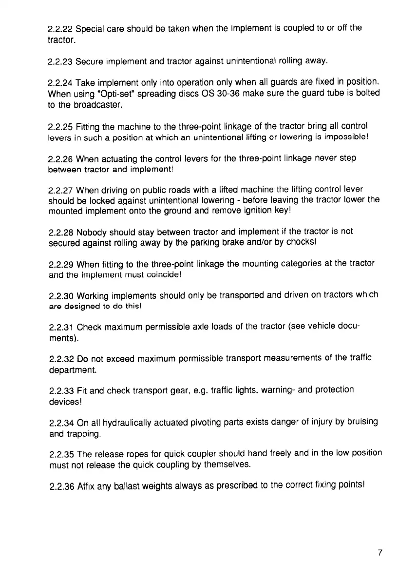 2.2.22 Special care should be taken when the implement is coupled to or off the
