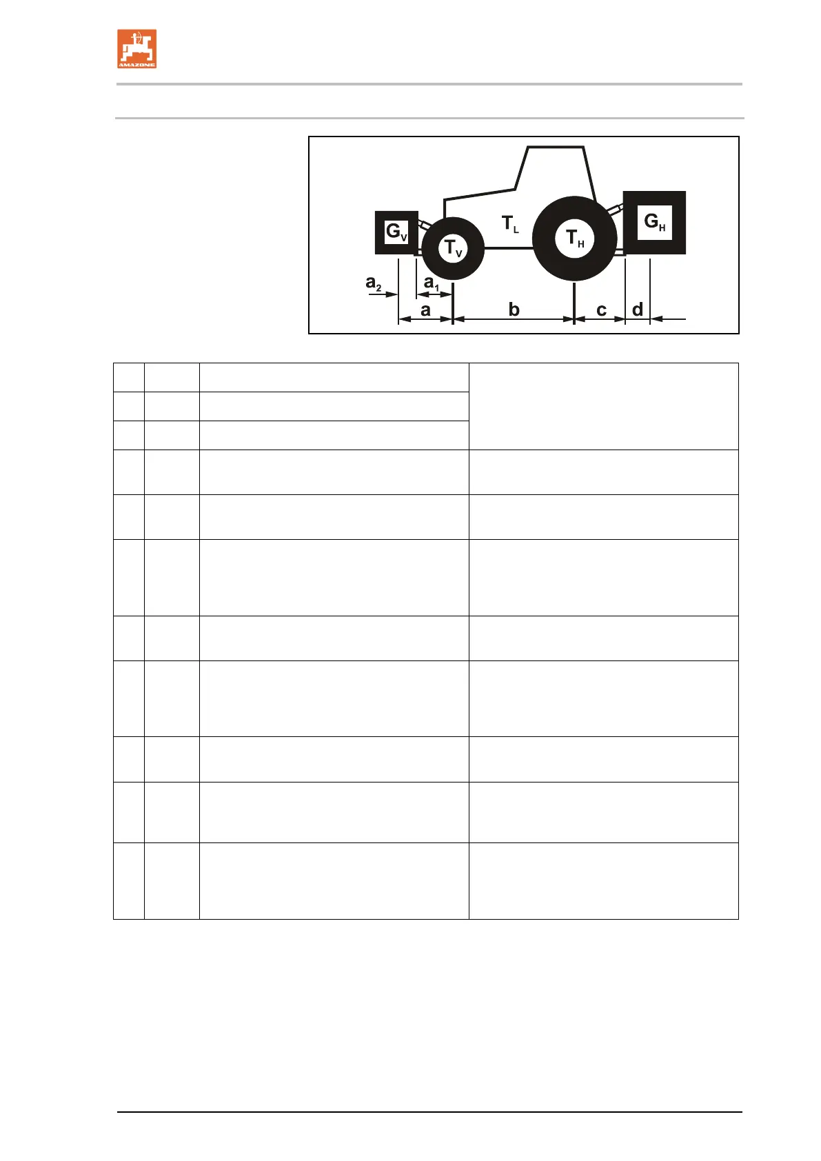 rear ballast (center of gravity distance)