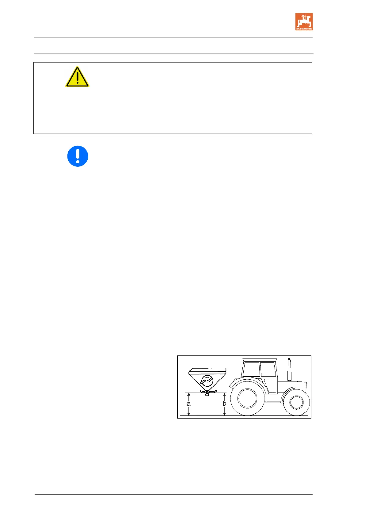 4.1 Raise or lower the fertiliser spreader via the tractor's three-