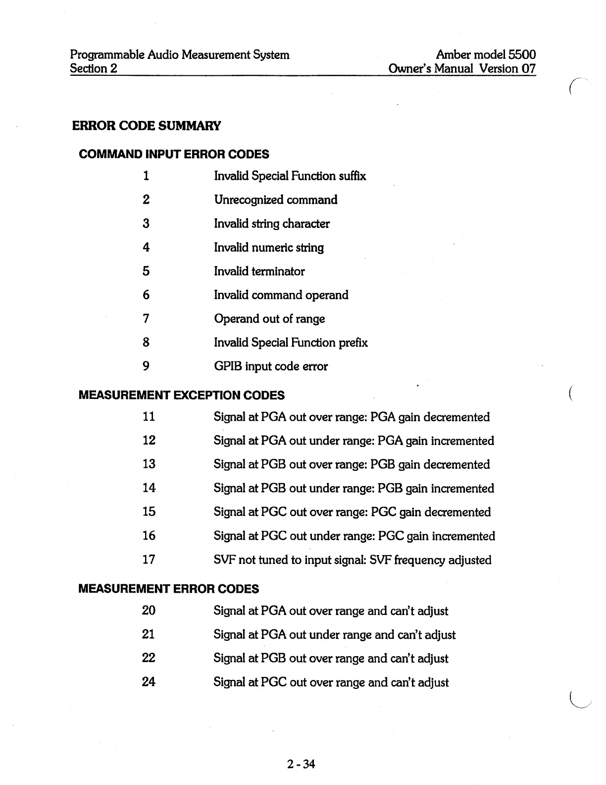 Amber 5500 - Error Code Summary