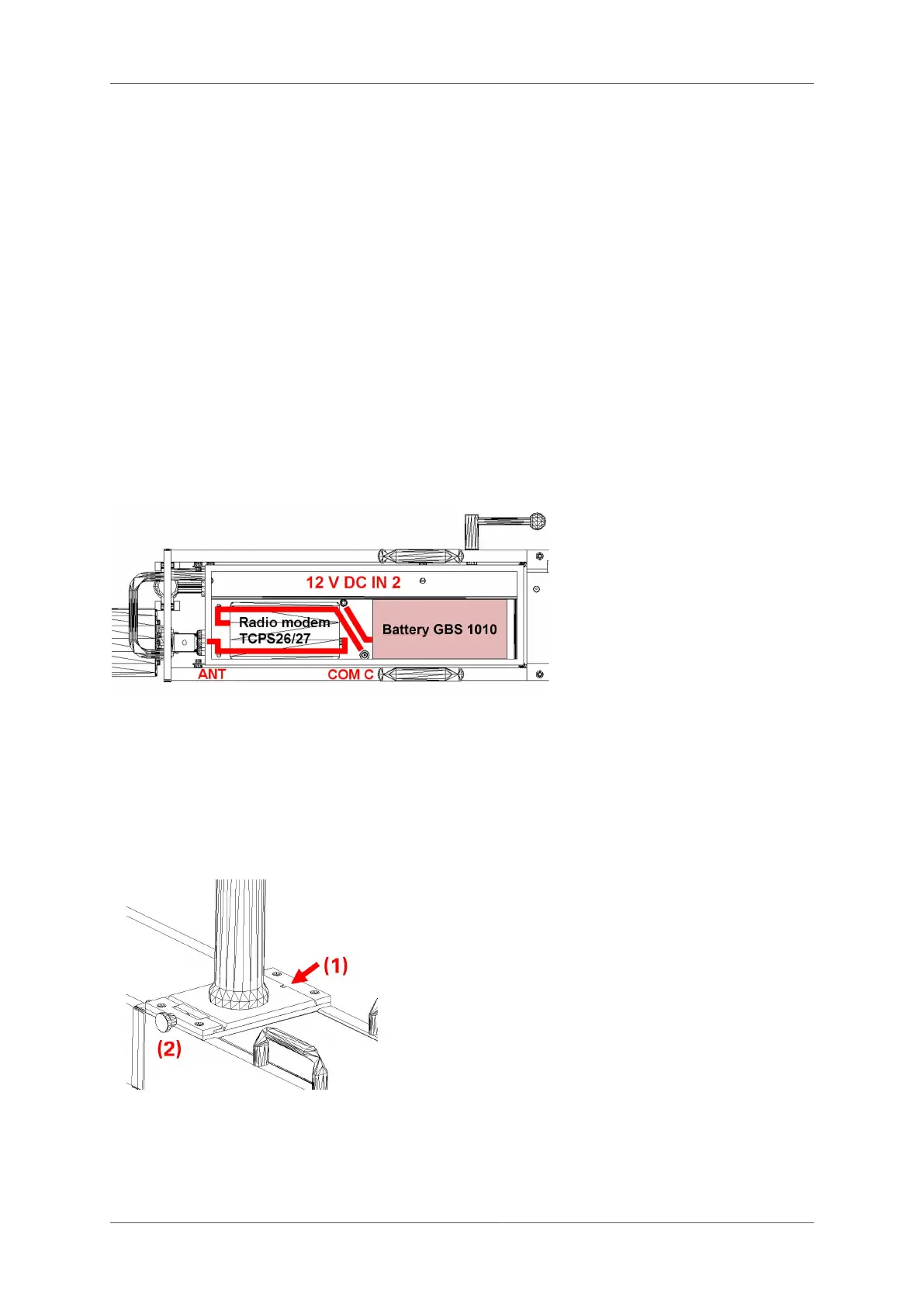 In the compartment of the track trolley TGS FX, the radio modem (optional) and the battery are