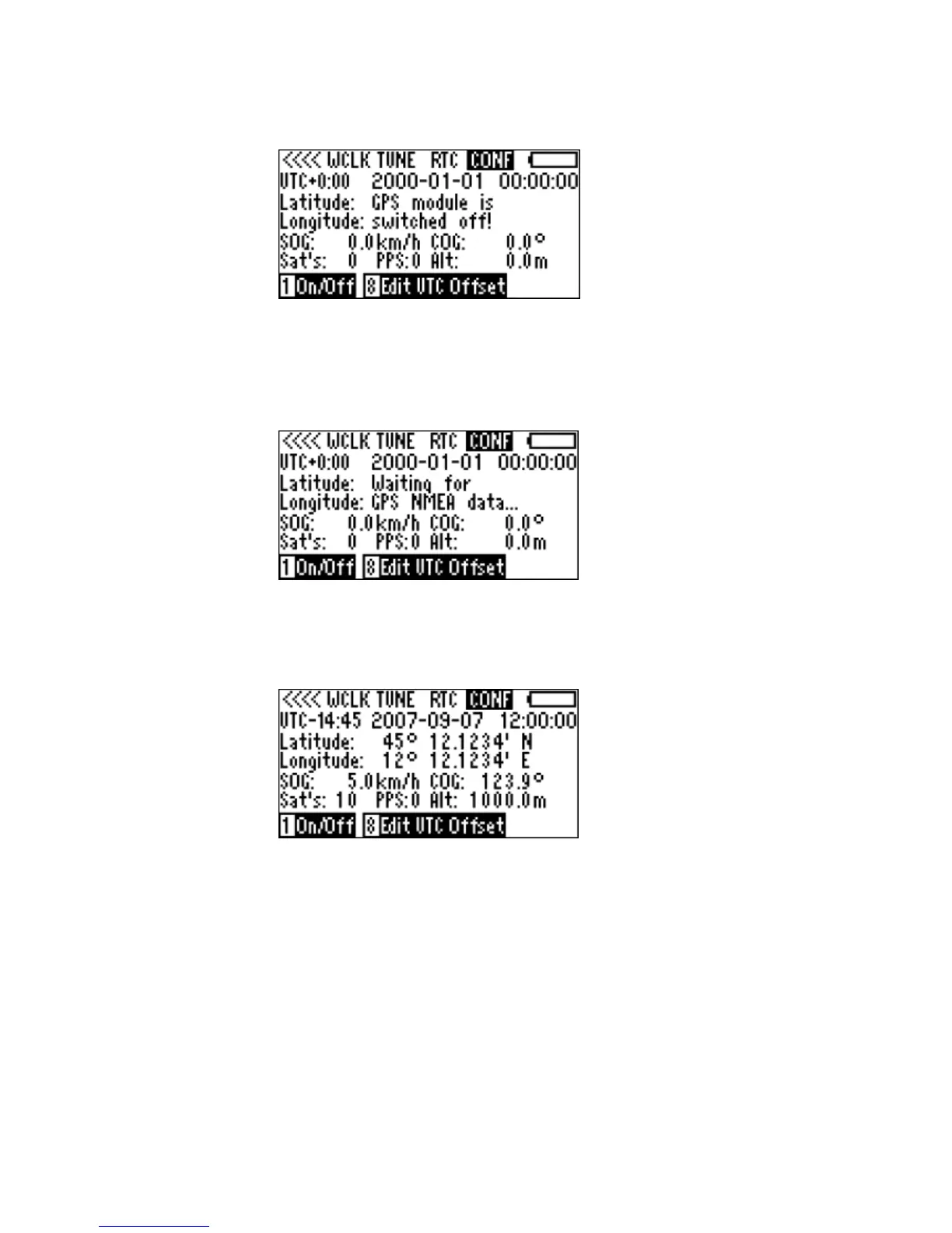 After switching the GPS module on by pressing key 1, at first the message “Waiting for GPS NMEA data…