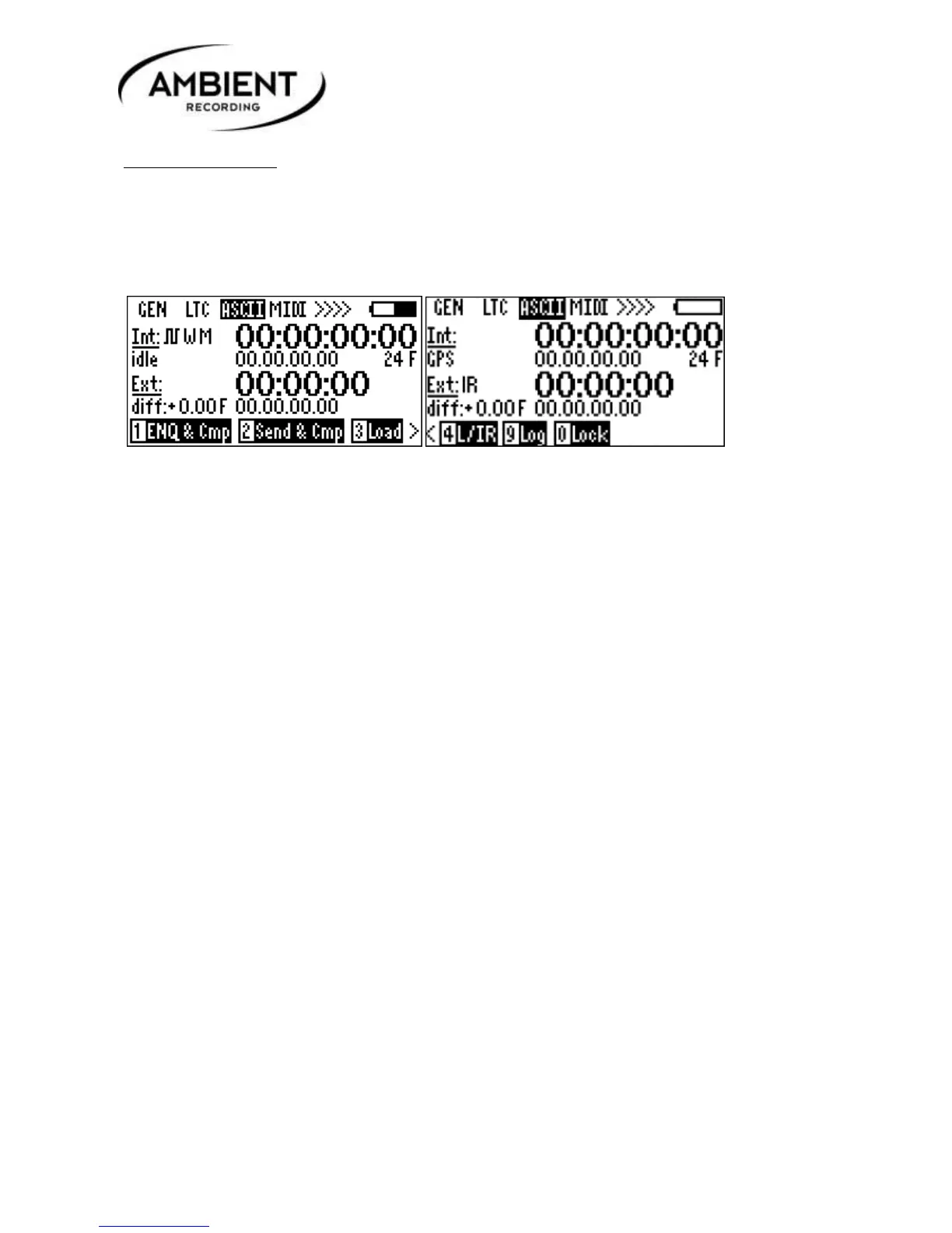 In this menu timecode can be sent, received and compared using the Aaton ASCII protocol. This