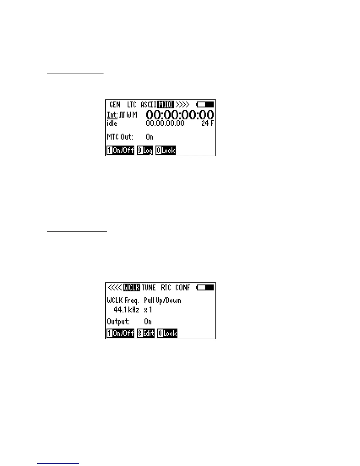 Please note: When the word clock generator is "on" a W will appear in the Gen TC line of