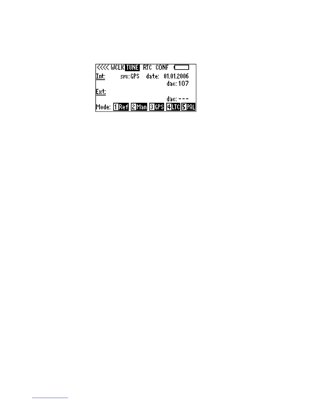 Press 2, Man: Manually shifts the Controller’s internal reference oscillator in 0.15ppm steps.