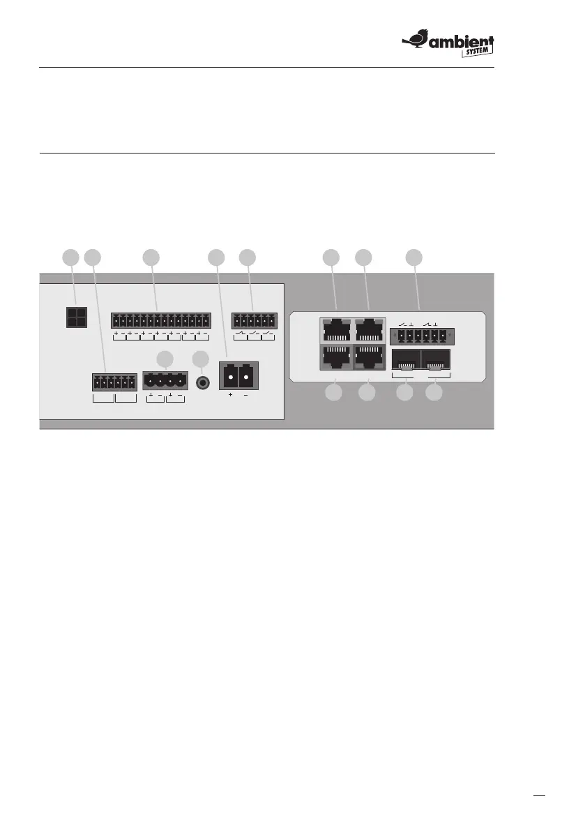Diagram of the connector panel for miniVES series 2001LN, 4001LN and 4002LN units