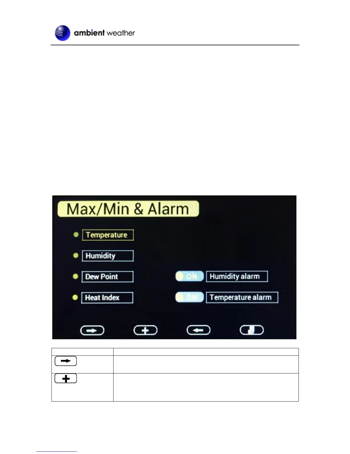 In the Normal mode, press the MENU key three times to enter Min / Max and Alarm Mode.