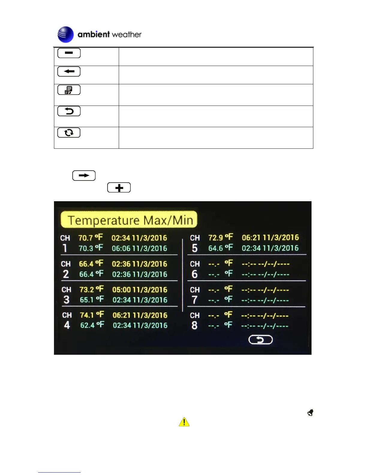 You can set a high and low temperature and humidity alarm on Channels 1-8.