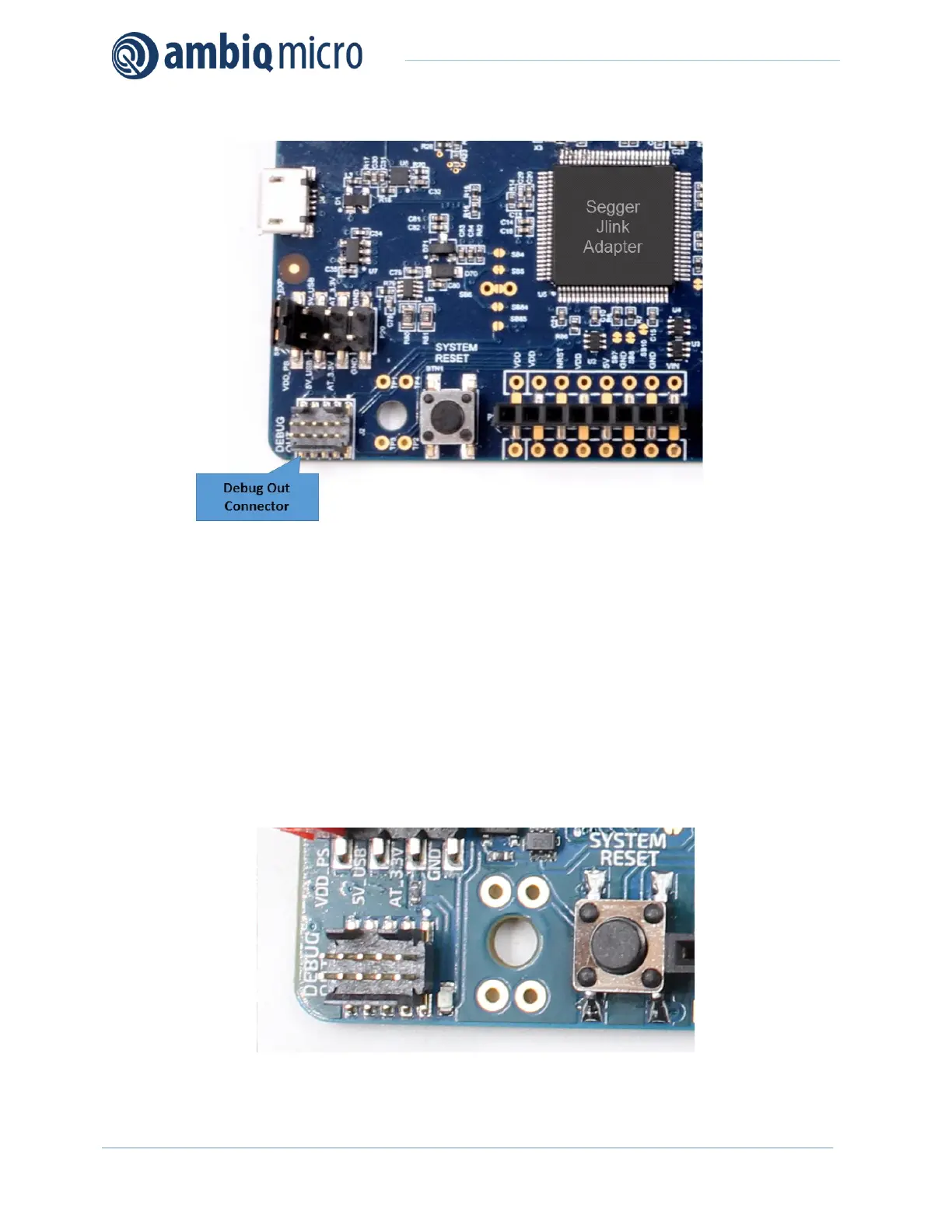 header (J2) on the EVB to the debug header on the target board. The EVB will automatically detect when
