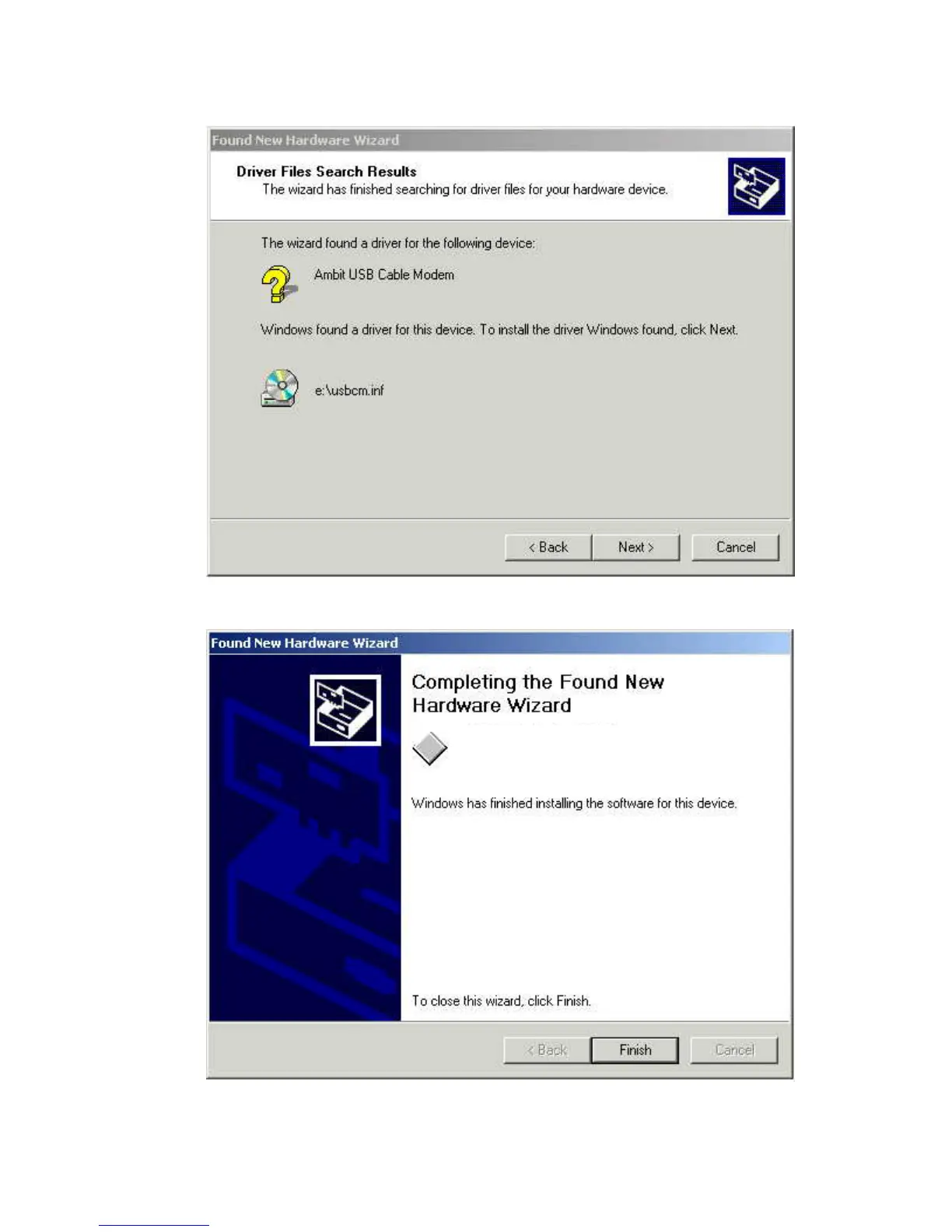 Click Next to install the driver files for the cable modem. You will see the following screen.