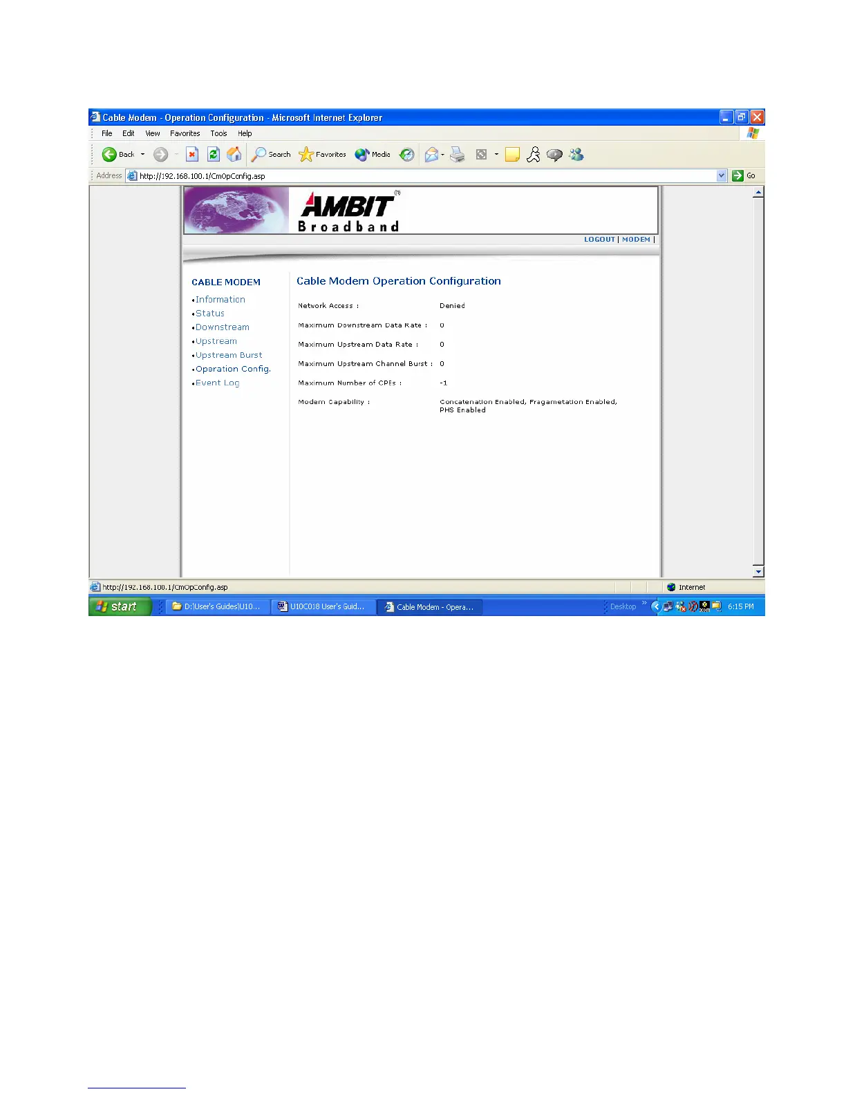 Ambit U10C018 - Operation Parameters