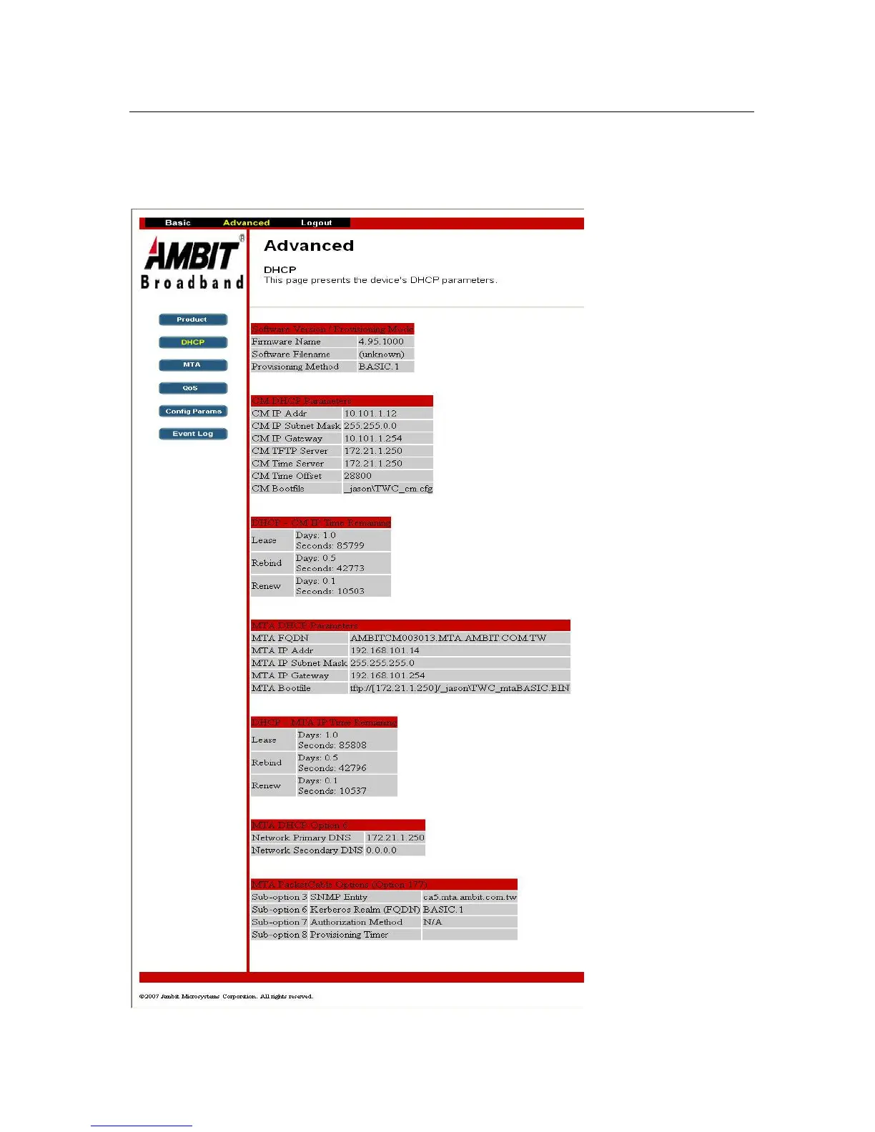 Ambit U10C034 - 3.11 QoS - Display service flow information