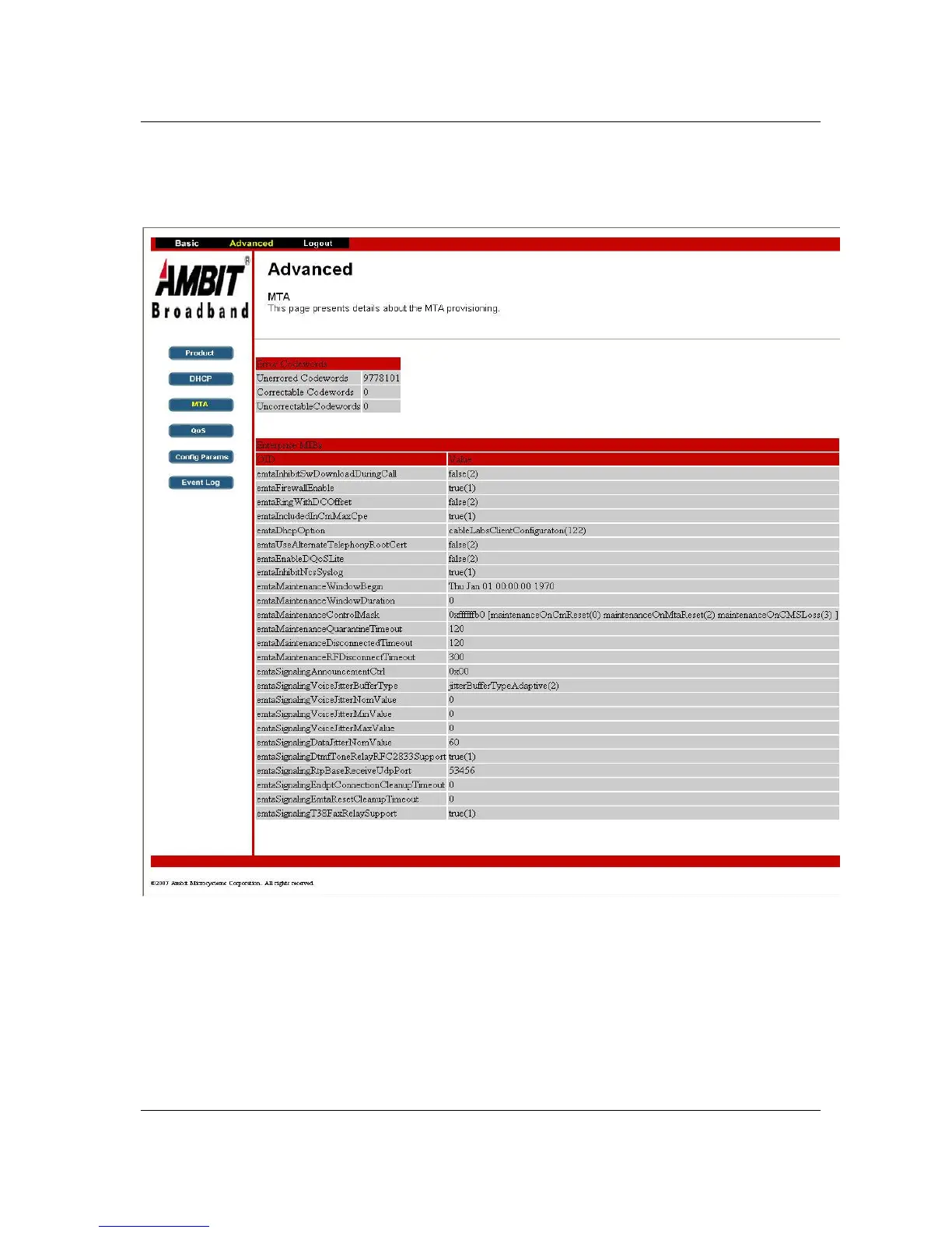 Ambit U10C034 - MTA - Display some Detail MTA Parameters