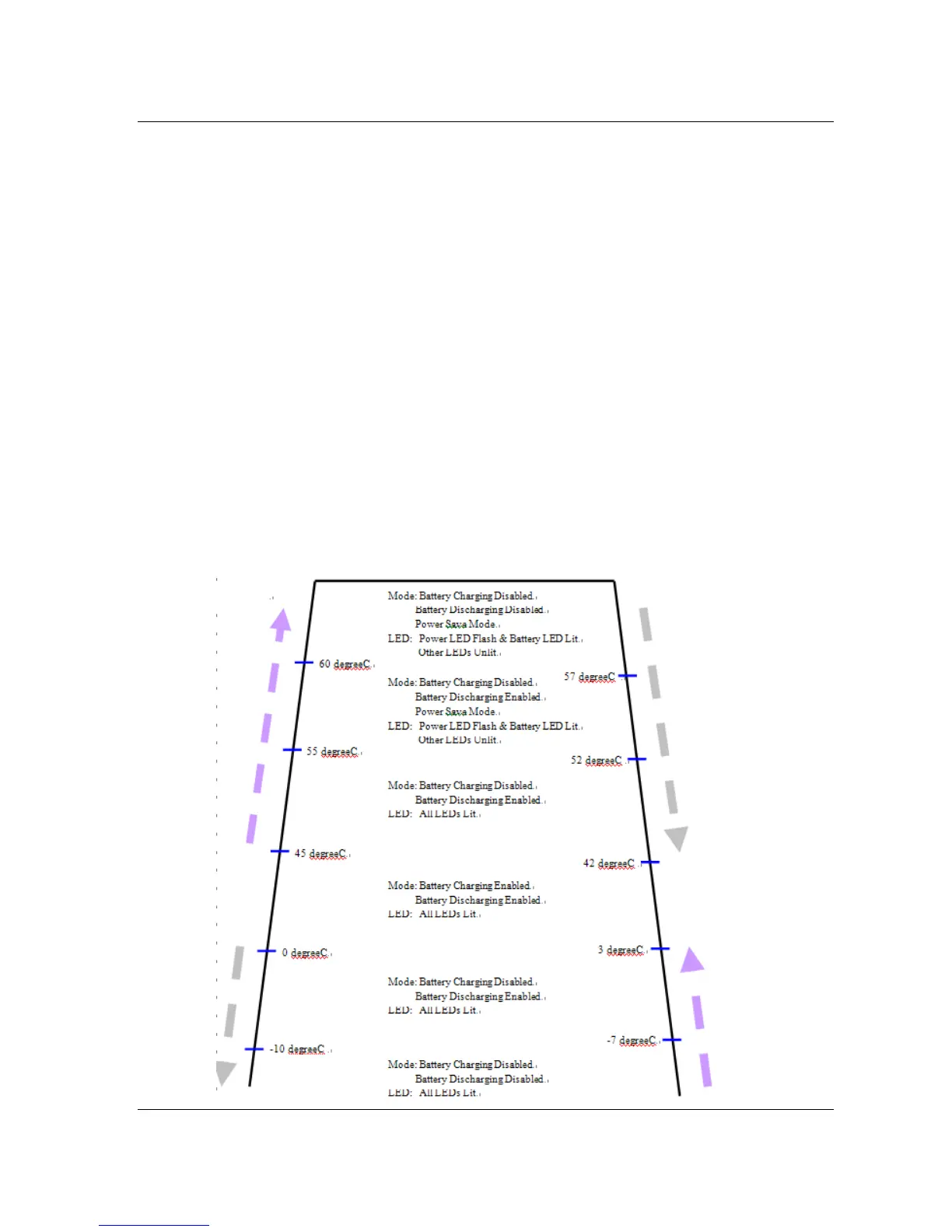 below 57 degrees(C), the battery discharge will be re-enabled (hysteresis mechanism), and the