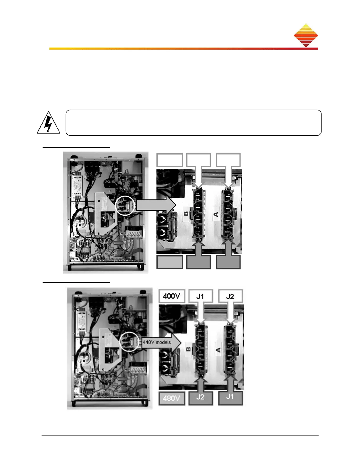 Do not connect 230V models to 440V mains; damage and hazard will result!