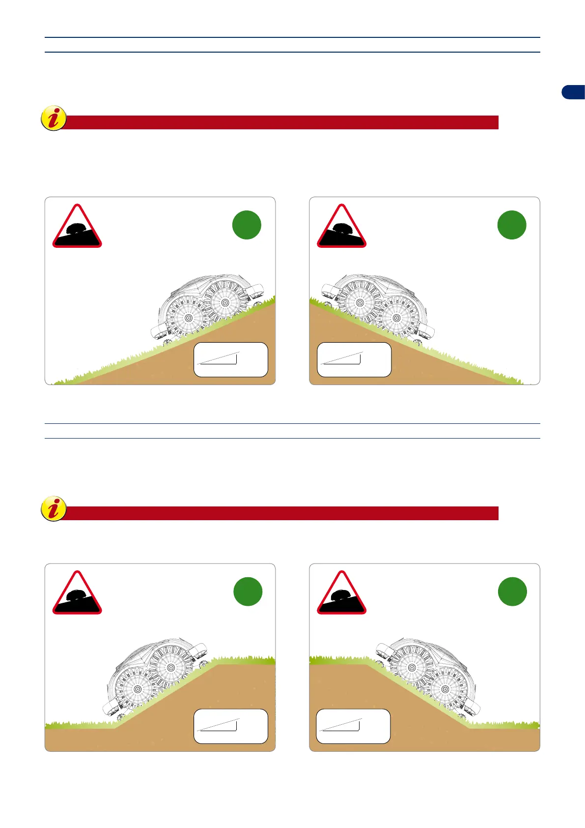 Check that all the areas of the lawn do not exceed the admissible slopes (see “Technical Specications”).