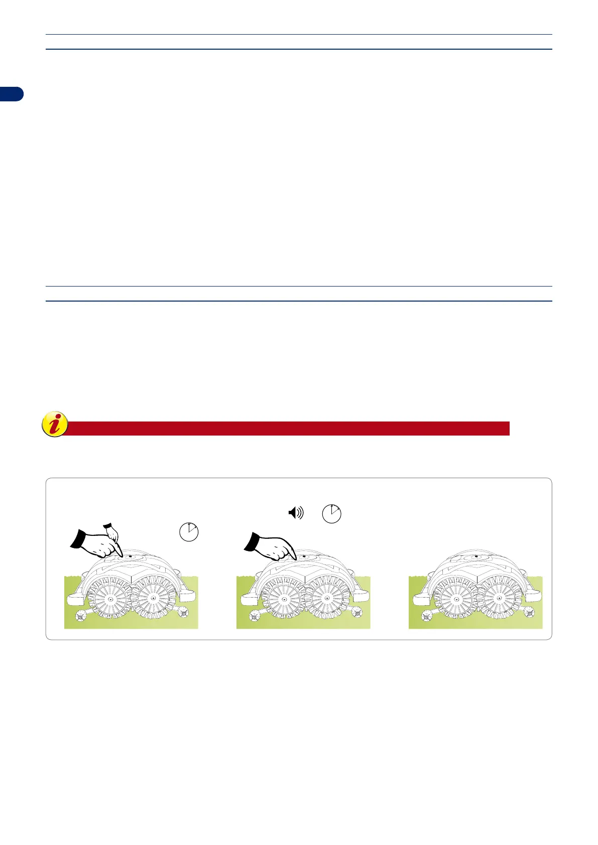 Press the “OFF/ON” button. After a few seconds the robot switches completely on. Press briey the “OFF/ON” button at intervals