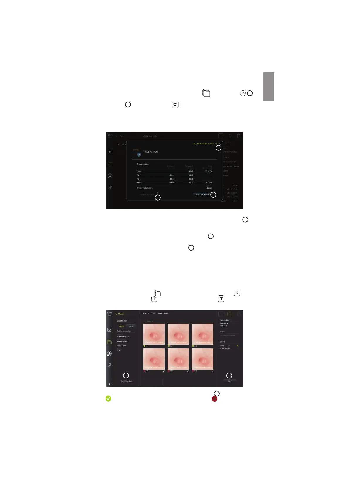 1. End the procedure and export the recorded files by pressing Finish and export