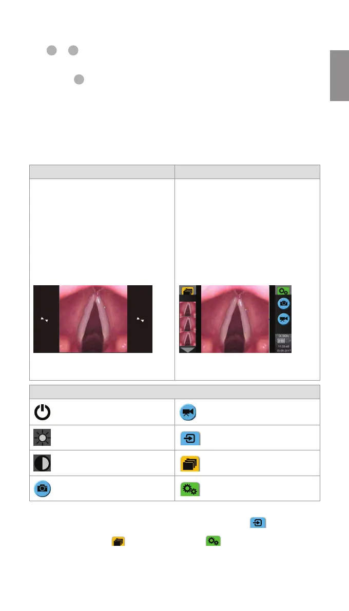 imagem ao vivo.Os botões quadrados AMARELOS ou VERDES são mostrados na guia amarela