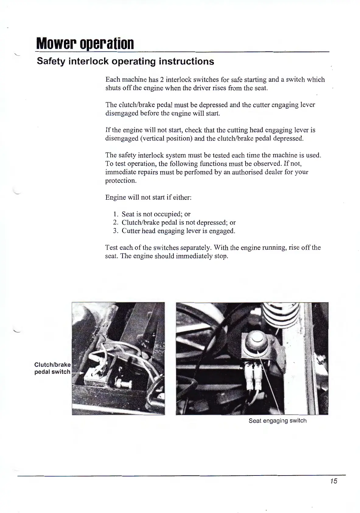 The clutch/brake pedal must be depressed and the cutter engaging lever