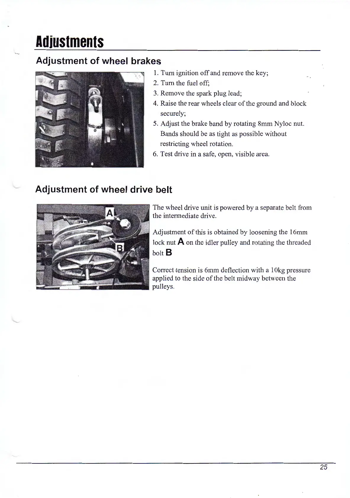 Adjust the brake band by rotating 8mm Nyloc nut.