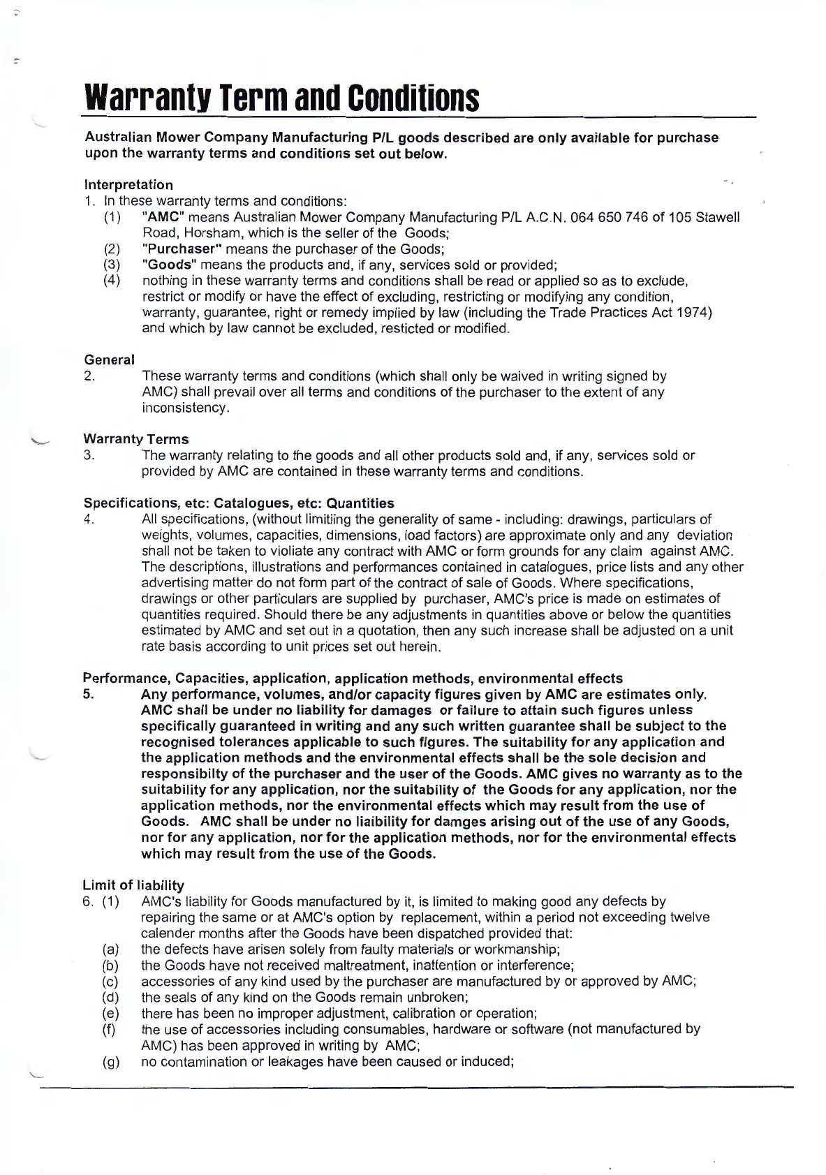 Australian Mower Company Manufacturing P/L goods described are only available for purchase