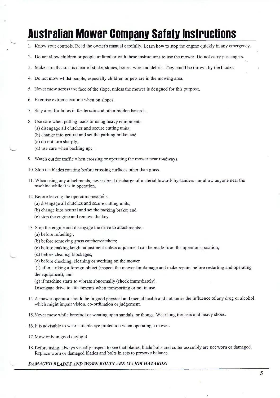 4. Do not mow whilst people, especially children or pets are in the mowing area.