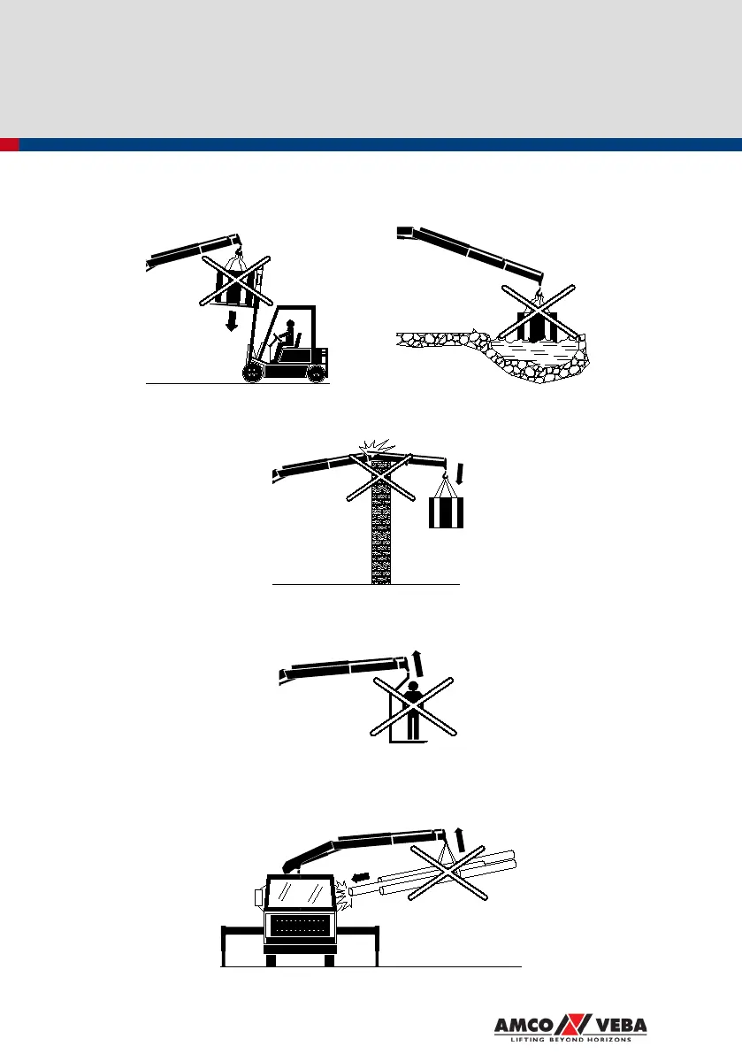 - Lifting of loads not placed on rigid and fixed supports unless the user knows the weight of the load