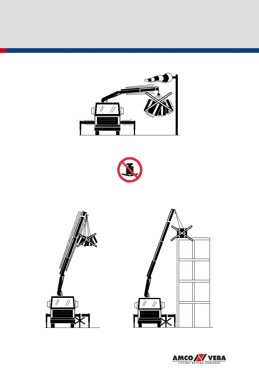 - Handling of loads at heights is strongly unrecommended: the load could bump against the booms