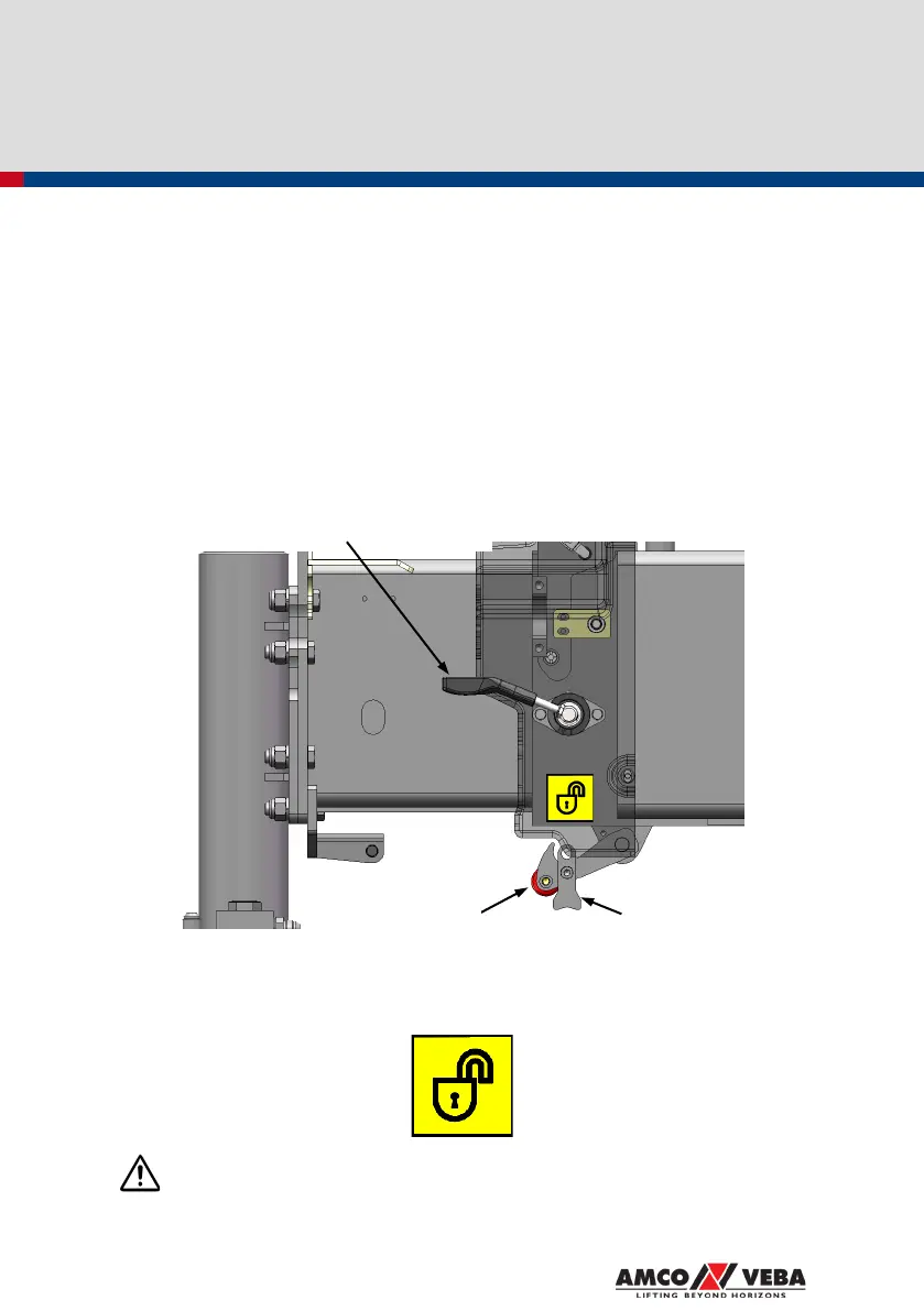The purpose of the locking device with lever is to lock the stabilizer extension in its fully retracted
